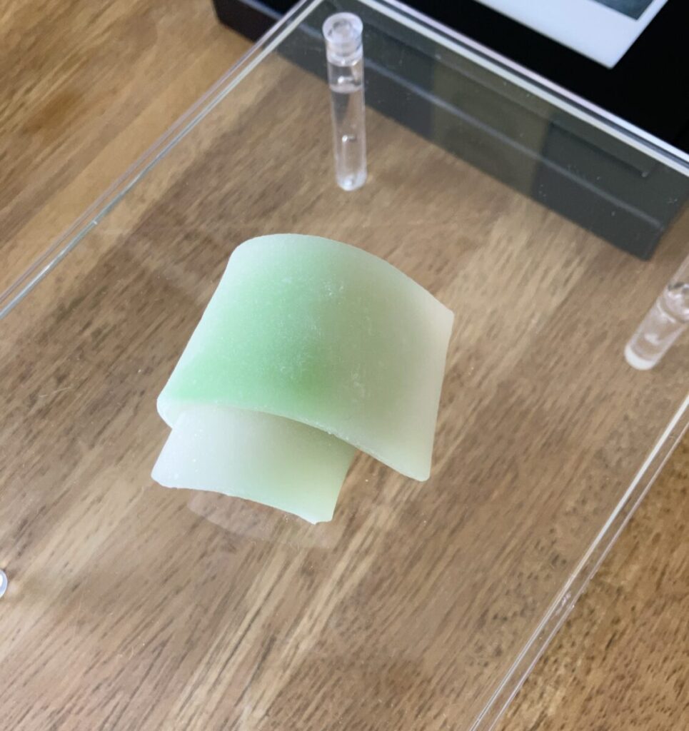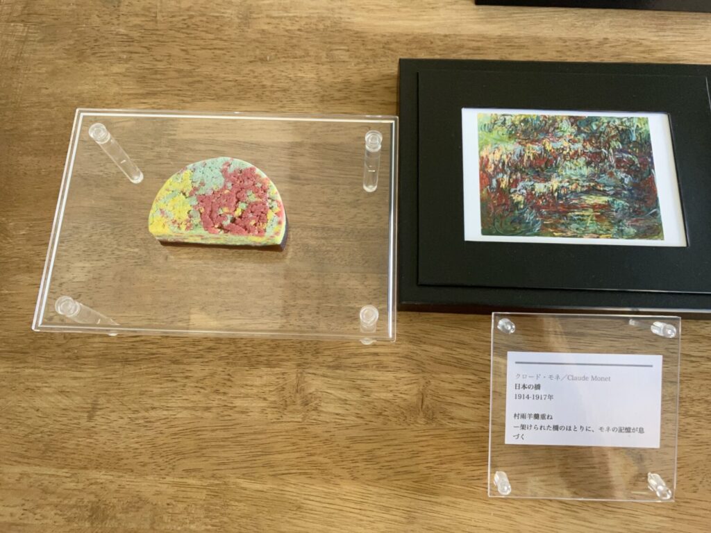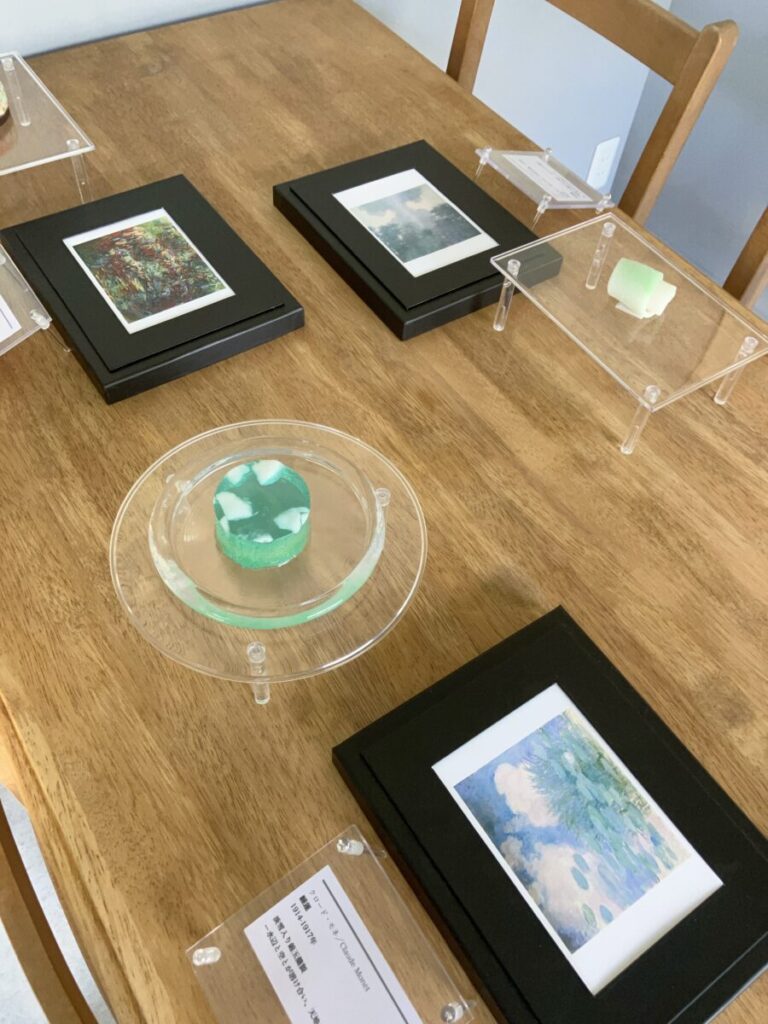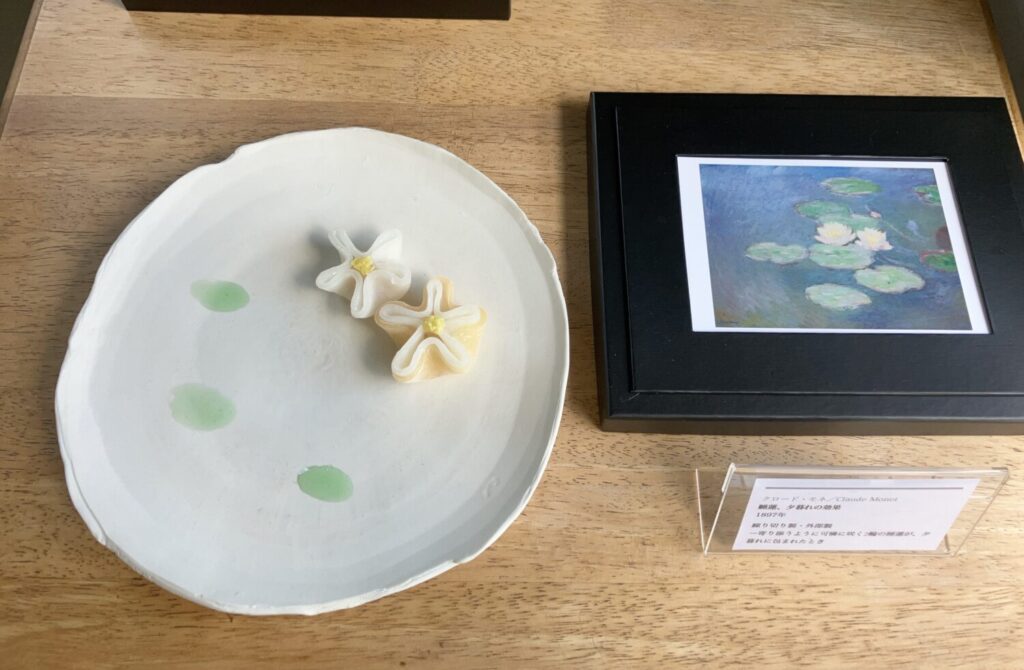 モネの絵からインスピレーションを受けて作られたいつみさんの和菓子。淡く優しい緑色が、絵筆のタッチに重なります。
