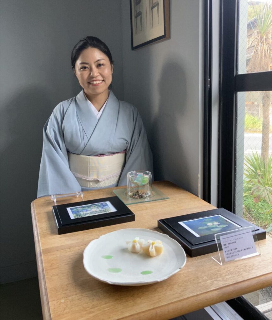 茶道家でありながら、和菓子作家でもあるいつみさん。そんな彼女にとってお茶と同じように、和菓子もまた大切な自己表現のひとつ。取材時は「サヴォアのお菓子と料理 nitta」さんで画家クロード・モネの作品をテーマにした、オリジナル和菓子の個展も開催していました。