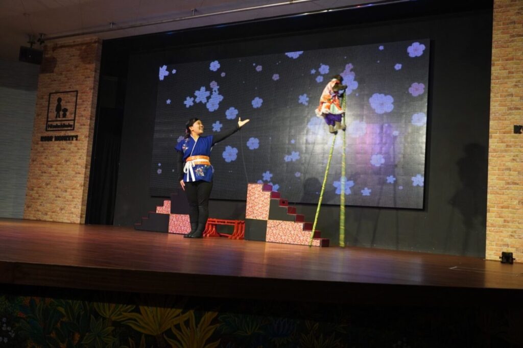 全天候型の劇場内は冷暖房完備で、客席との距離も近く、表情の細やかな変化まで見ることができます。照明や大型ビジョンを駆使した演出で、路上パフォーマンスとは違った猿まわしの魅力を体感できます。観覧したのは、手話を取り入れた芸を披露するコンビ「アイノテ」。息ぴったりの演技に、観客席の赤ちゃんも思わず歓声を上げていました。公演後には写真撮影やグッズ販売もあり、観客とお猿さんが直接ふれあえる時間も設けられています。