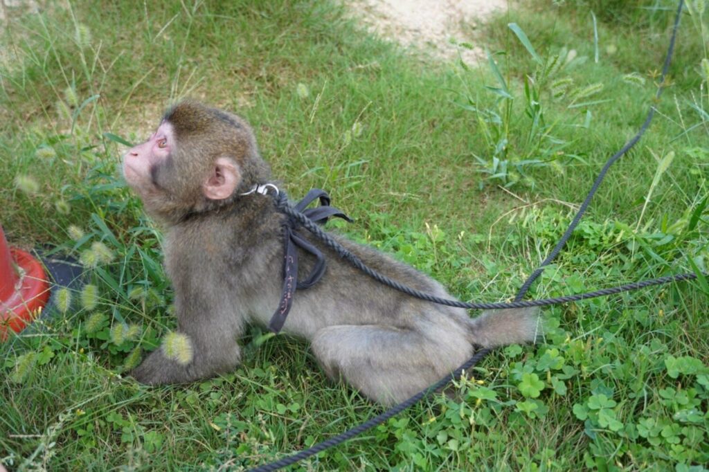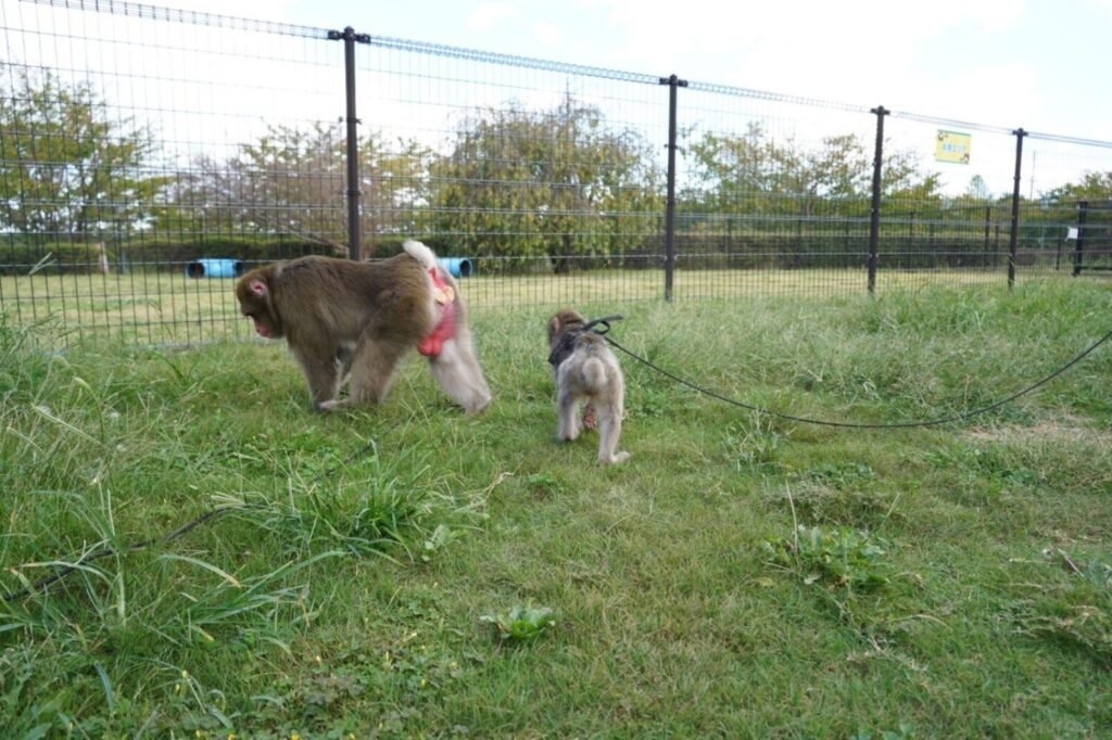 インタビュー後にお猿さんとの散歩に同行させてもらいました。ジャッキーと過ごす時間の中で、特に大切にしているのが散歩だという咲笑さん。広い園内を歩きながら、空や木を見上げてはしゃぐジャッキーの姿に、芸を超えた絆の深さを感じました。