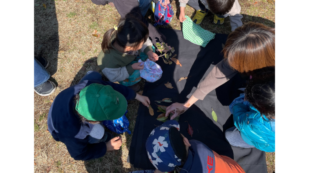 具体的には落ち葉や木の実を拾ったり、虫を見つけたりして、道具に頼らず自然と触れ合います。親が子どもと一緒に楽しむことで、親子間のコミュニケーションも増えるんです。