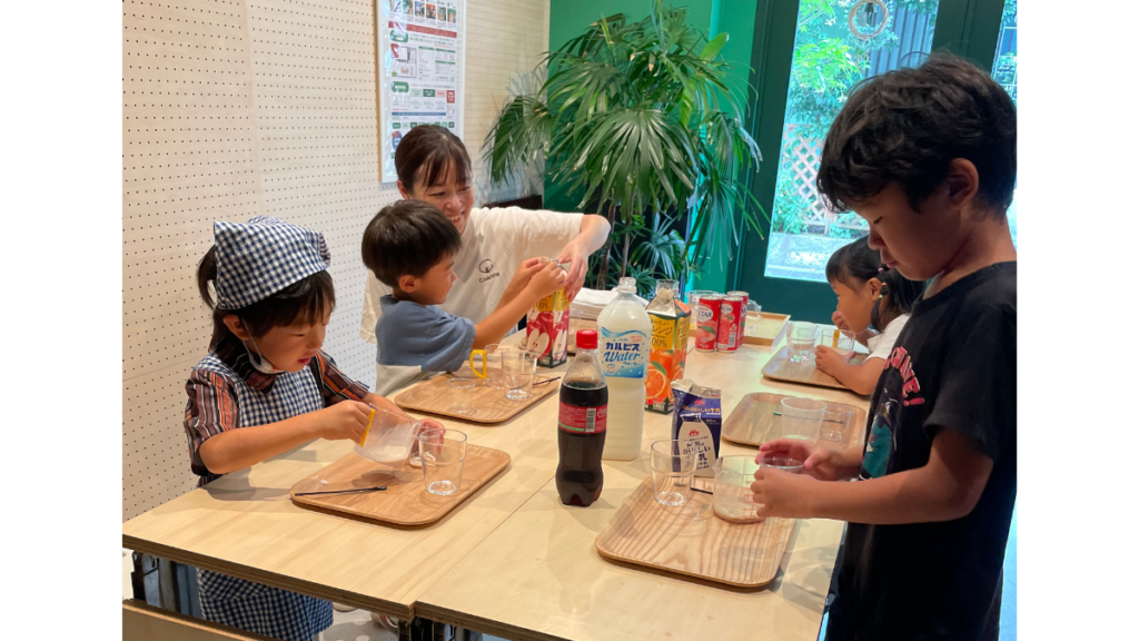 また「ミックスジュース作り」では、子どもたちにオリジナルドリンクを作ってもらいます。