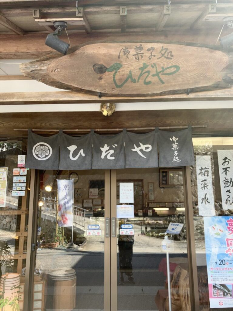 商店街の入り口にある「御菓子処ひだや」さん。100年以上の歴史を持つ老舗和菓子屋で、奥三河の食材を使用した四季折々の和菓子を提供しています。