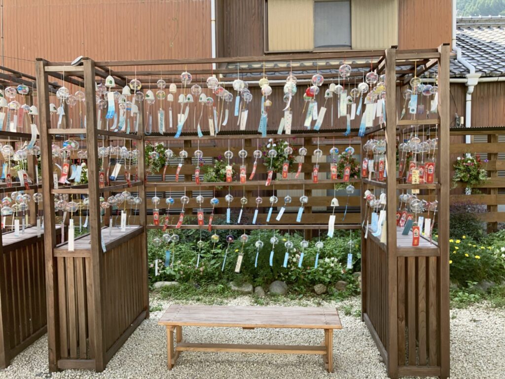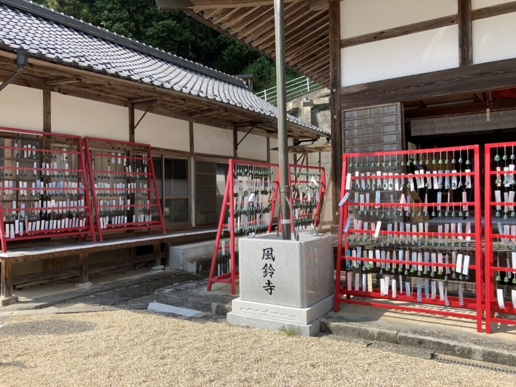 境内には風が吹くたび一斉に揺れる無数の風鈴が。涼やかで清らかな音色が山すそに広がっていきます。日本ならではの鐘の響きに、自然と心もすっきりします。