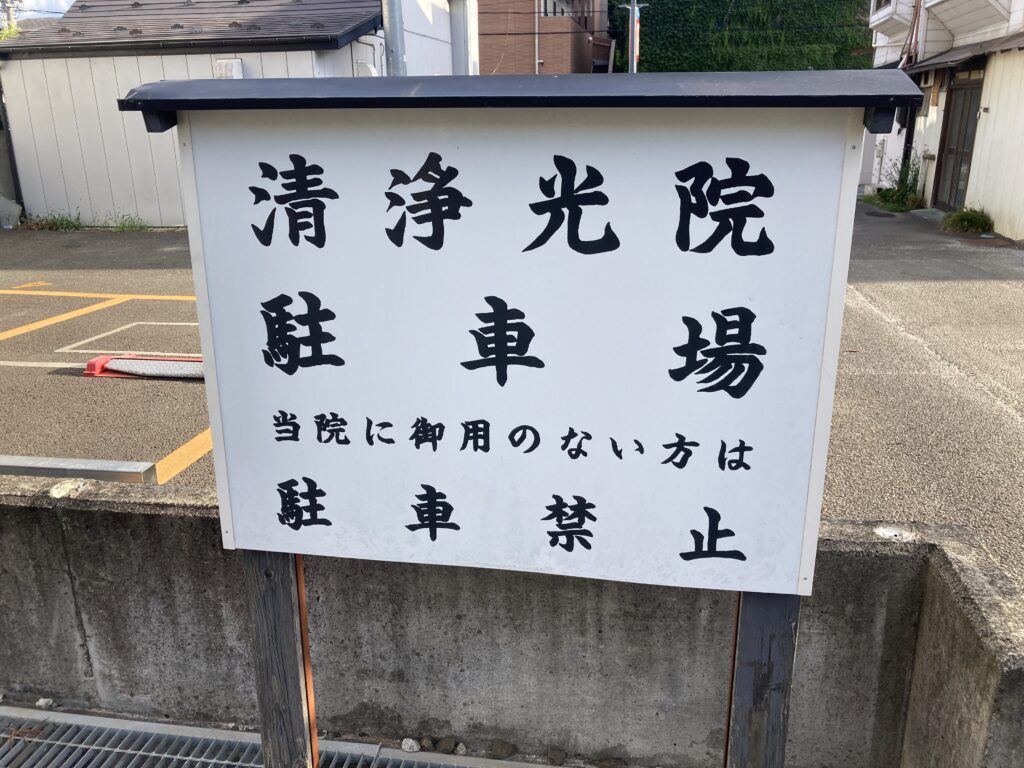 入り口には、「清浄光院」の文字がありました。街中に急に現れるので、車で訪れる際はぜひ見逃さないようにしてください。
