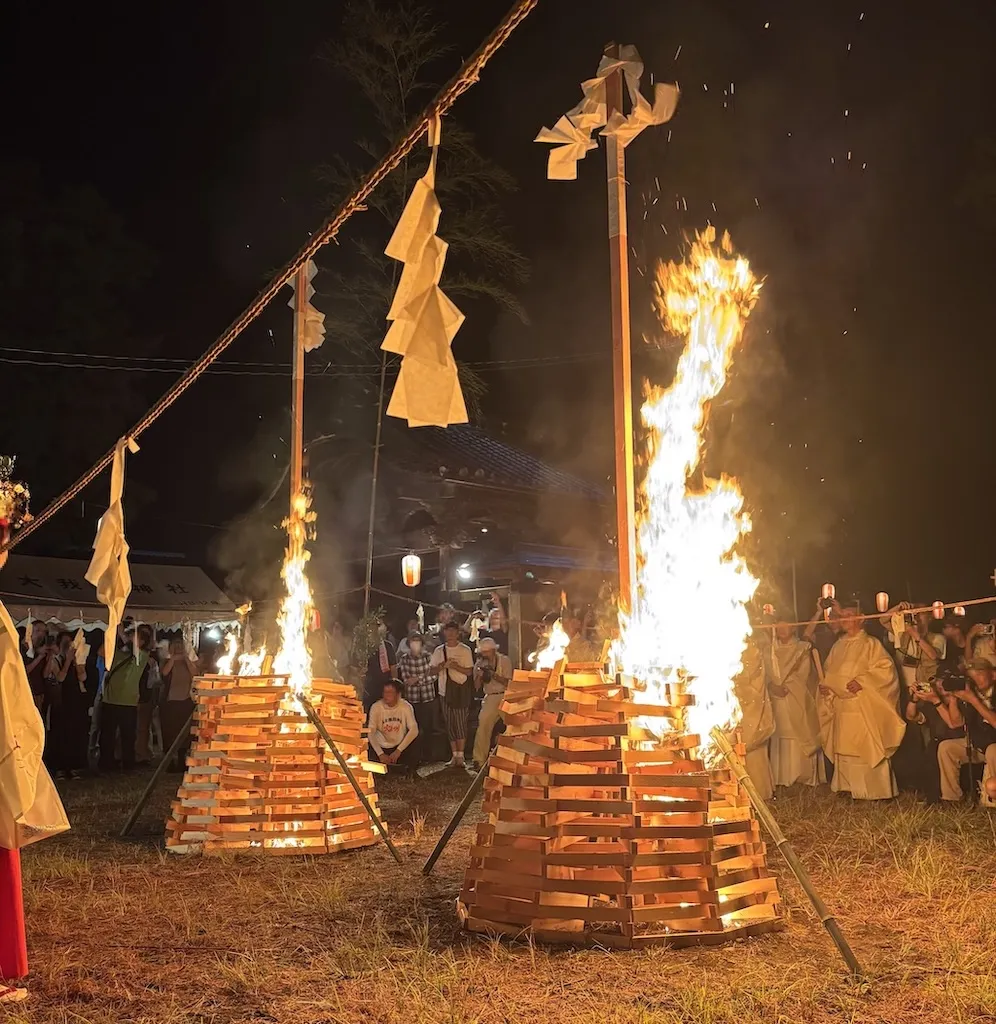 火の唸り・雅楽の音・見守る声。すべてが重なったお祭りを初めて見学しました。燃えさかる炎は、今までの人生やこれからのことを考える時間を与えてくれます。
