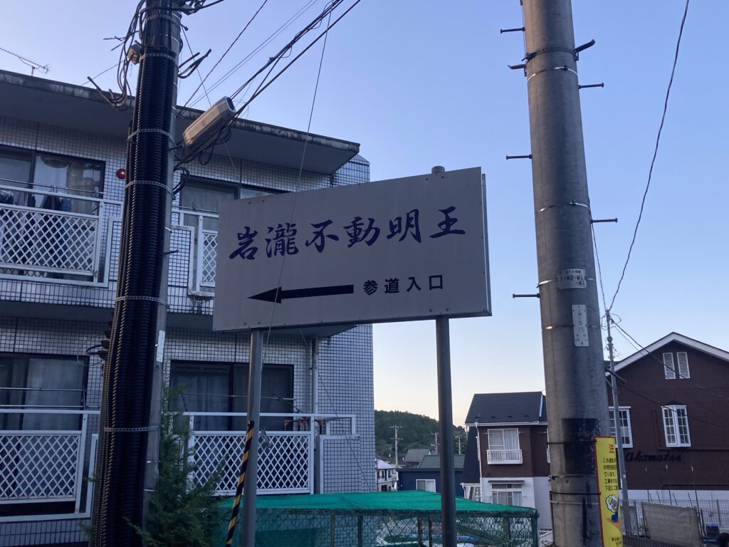 「岩瀧不動明王」はマンションの裏にあるので、住宅街に突然現れます。一応、案内看板はありますが、見逃さないようにしてください。