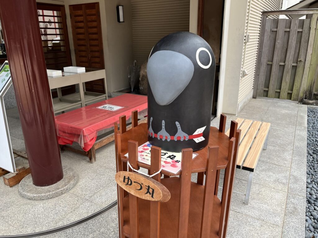 こちらは弓弦羽神社のマスコット、ゆづ丸です。こちらも3本足のやたがらすです。