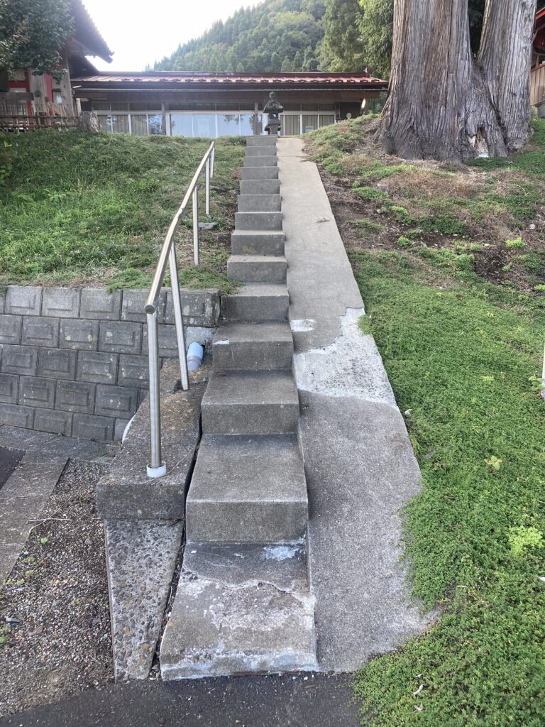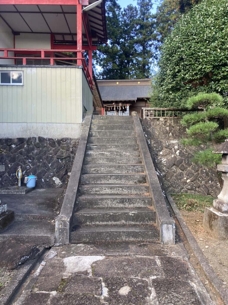 駐車場側からは、階段を上って拝殿へ向かいます。少し階段が細いので、注意してください。
