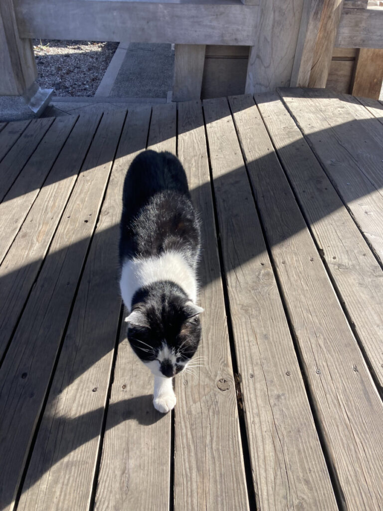 山門にたどり着くと、かわいらしい猫が寄ってきました!これは何柄というのでしょうか?とてもかわいいです…!