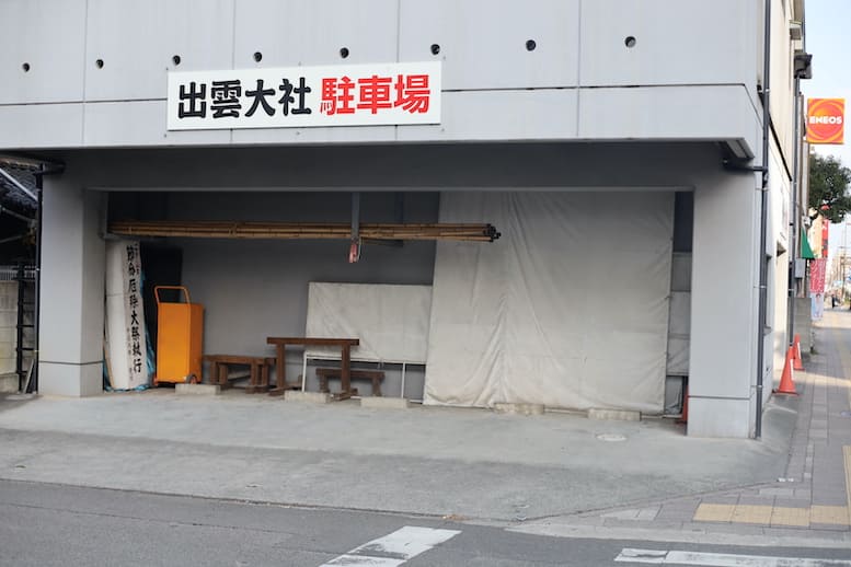 鳥居をくぐるとすぐに社殿があり、出雲大社とおそろいの大きな注連縄(しめなわ)が参拝者を迎えます。
