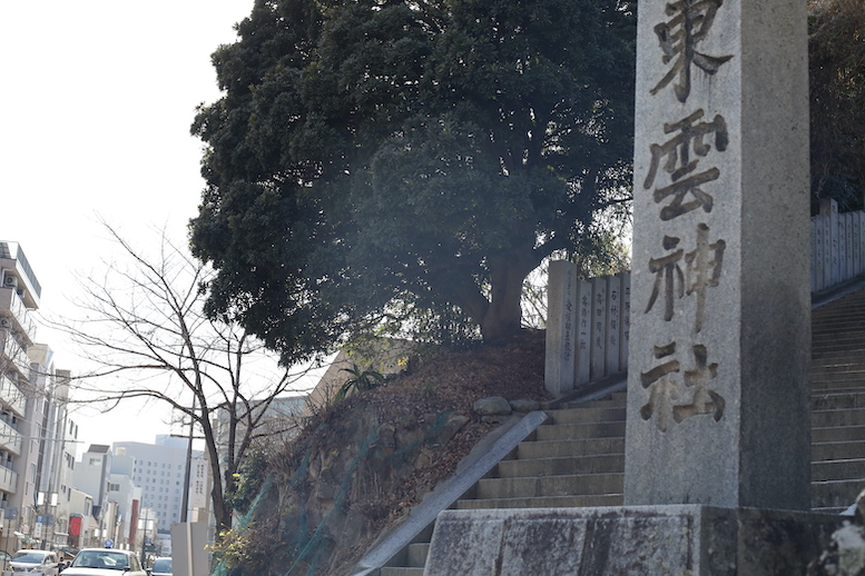 松山市中心部、松山城ロープウェイ・リフト乗り場のすぐそば。観光客で賑わう大街道から徒歩数分でありながら、境内に足を踏み入れると、空気が切り替わる不思議な静けさをたたえるのが「東雲神社(しののめじんじゃ)」です。