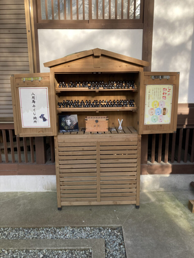 拝殿の左奥側へ行くと、八咫烏みくじの納所がありました。