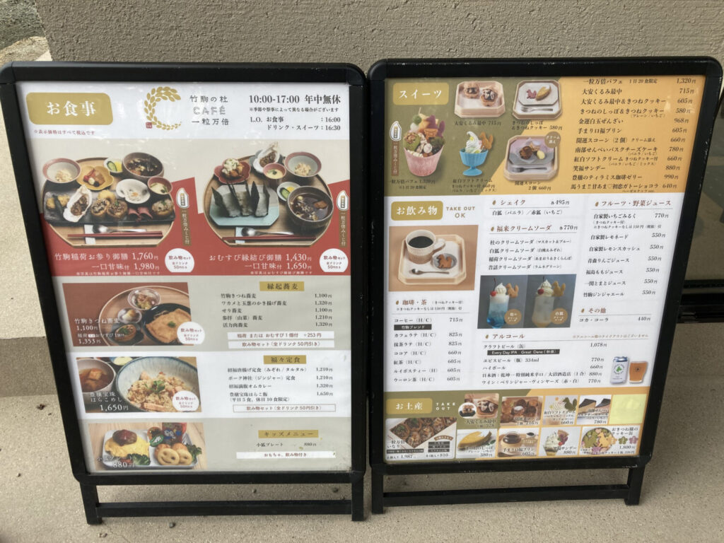 引き続き神社内を歩いていると、カフェのメニューがありました。