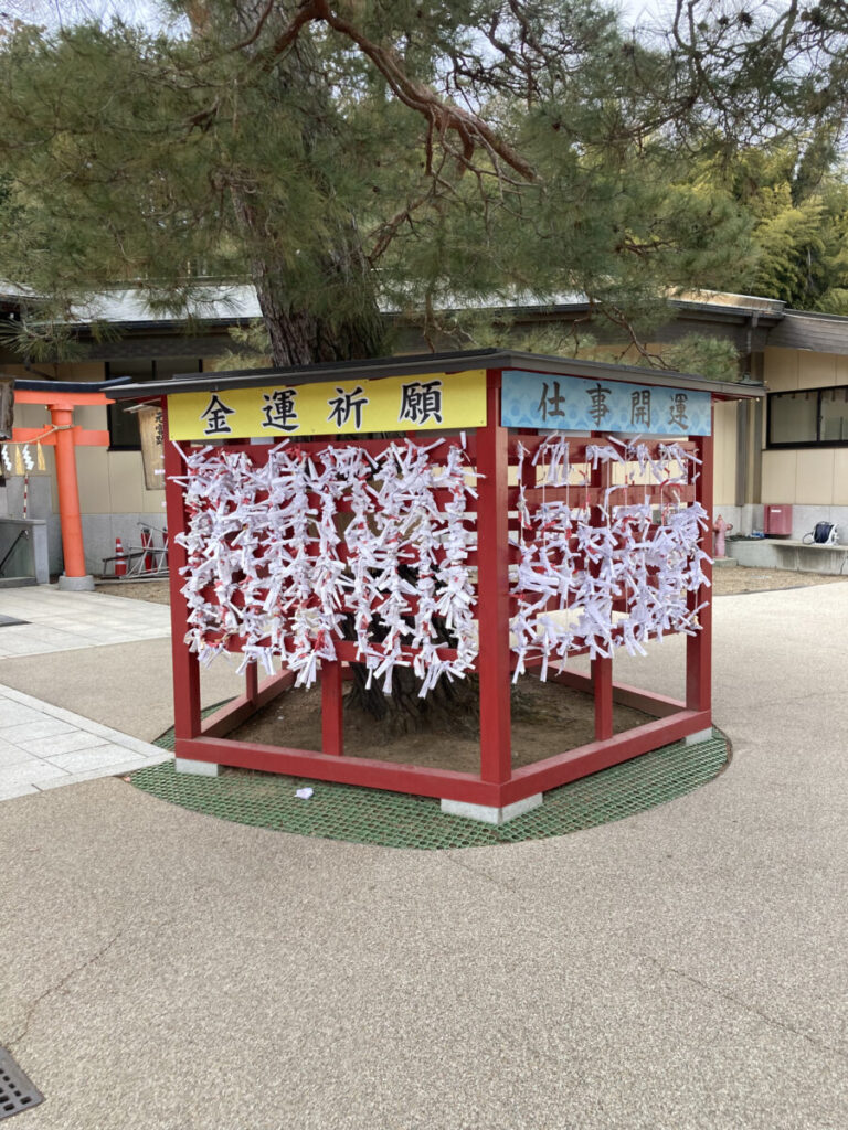 「竹駒神社」には金運や仕事運など、さまざまなご利益があります。実際に大きな木の下に、金運祈願や仕事開運などのみなさんの願いがたくさんありました。