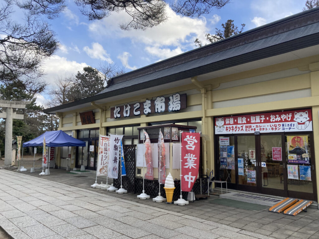 ちなみに、神社内には「たけこま市場」というおみやげ屋さんもあります。軽食もありますし、休憩にも使えますので、ぜひ立ち寄ってみてください。